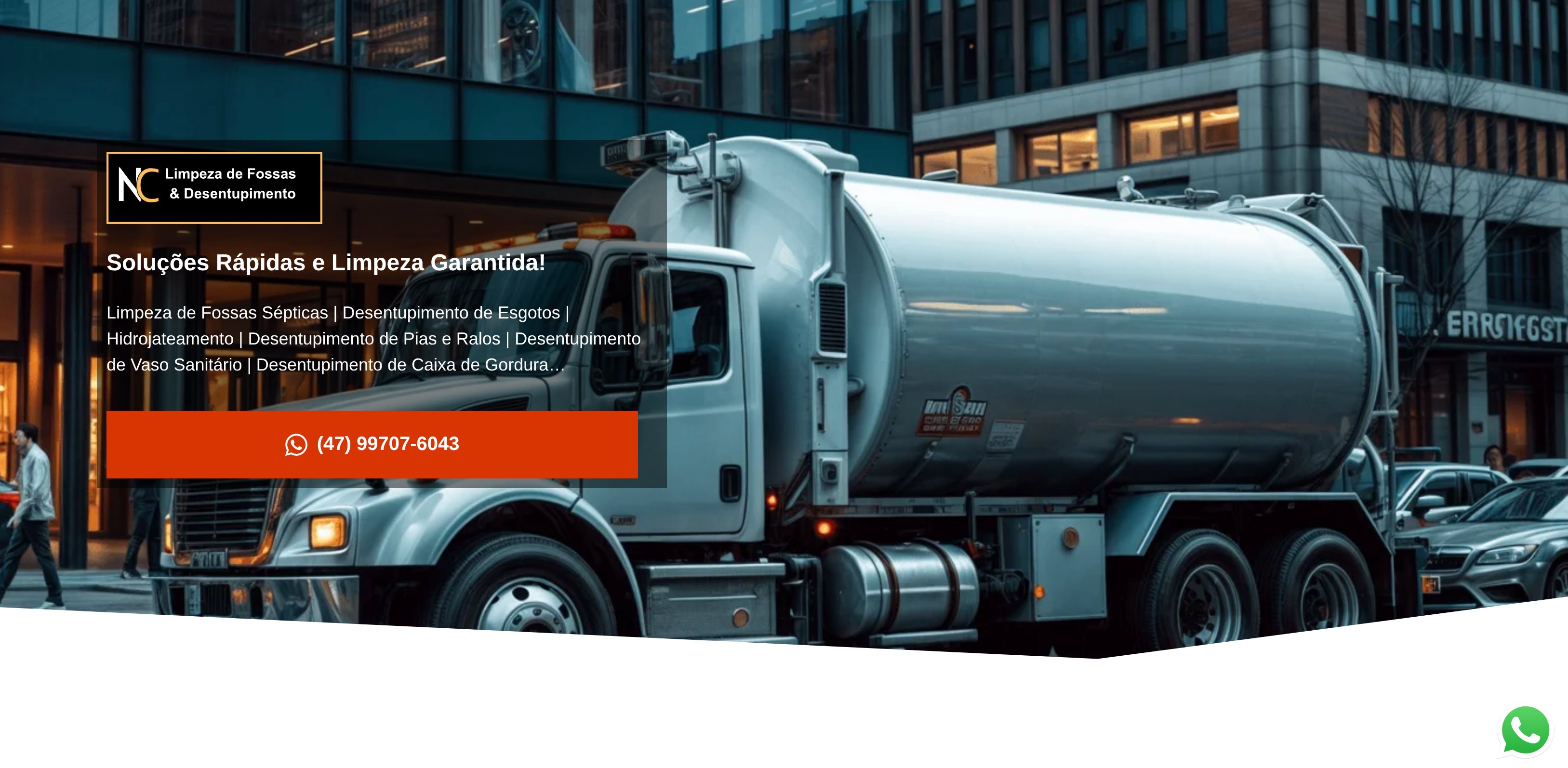 Site profissional para empresa de limpeza de fossas e desentupimento, com design moderno e sistema de agendamento emergencial.